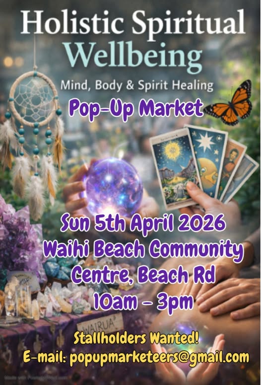 Any stallholders keen to be apart of our Easter Sunday 5th April 2026 Waihi Beach Holistic Wellbeing Pop-Up Market.
