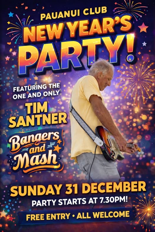 The Pauanui Club is thrilled to present Tim Santner and his band Bangers & Mash, bringing the soundtrack to your New Year’s celebration.