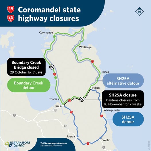 We'll be closing State Highway 25 and then State Highway 25A in Coromandel in the upcoming weeks.